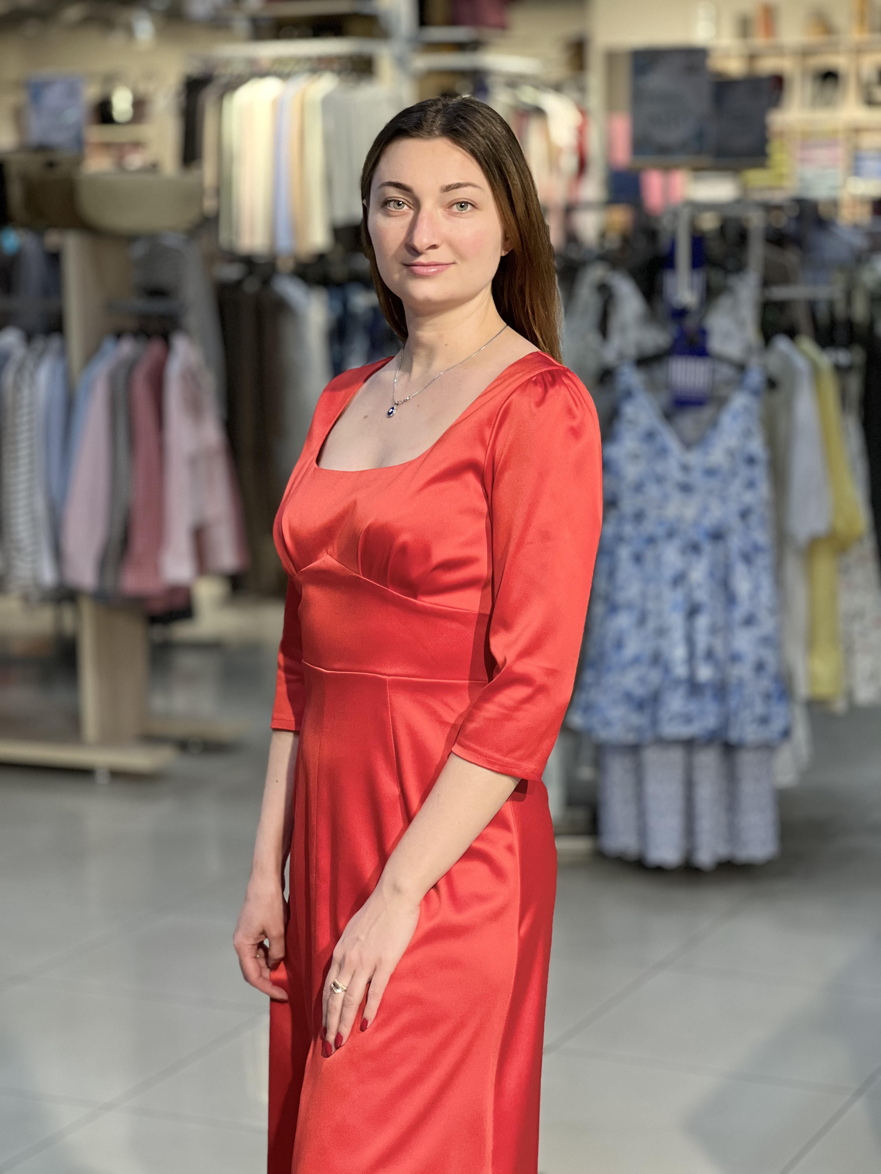 Сукня LN 994 довга рукав 3/4 атлас Stolyarchuk червоний, 44-50