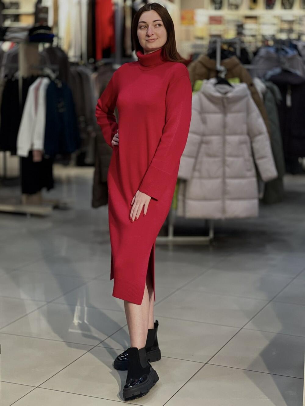Сукня трикотажна довга з розрізами по бокам та високою горловиною.
