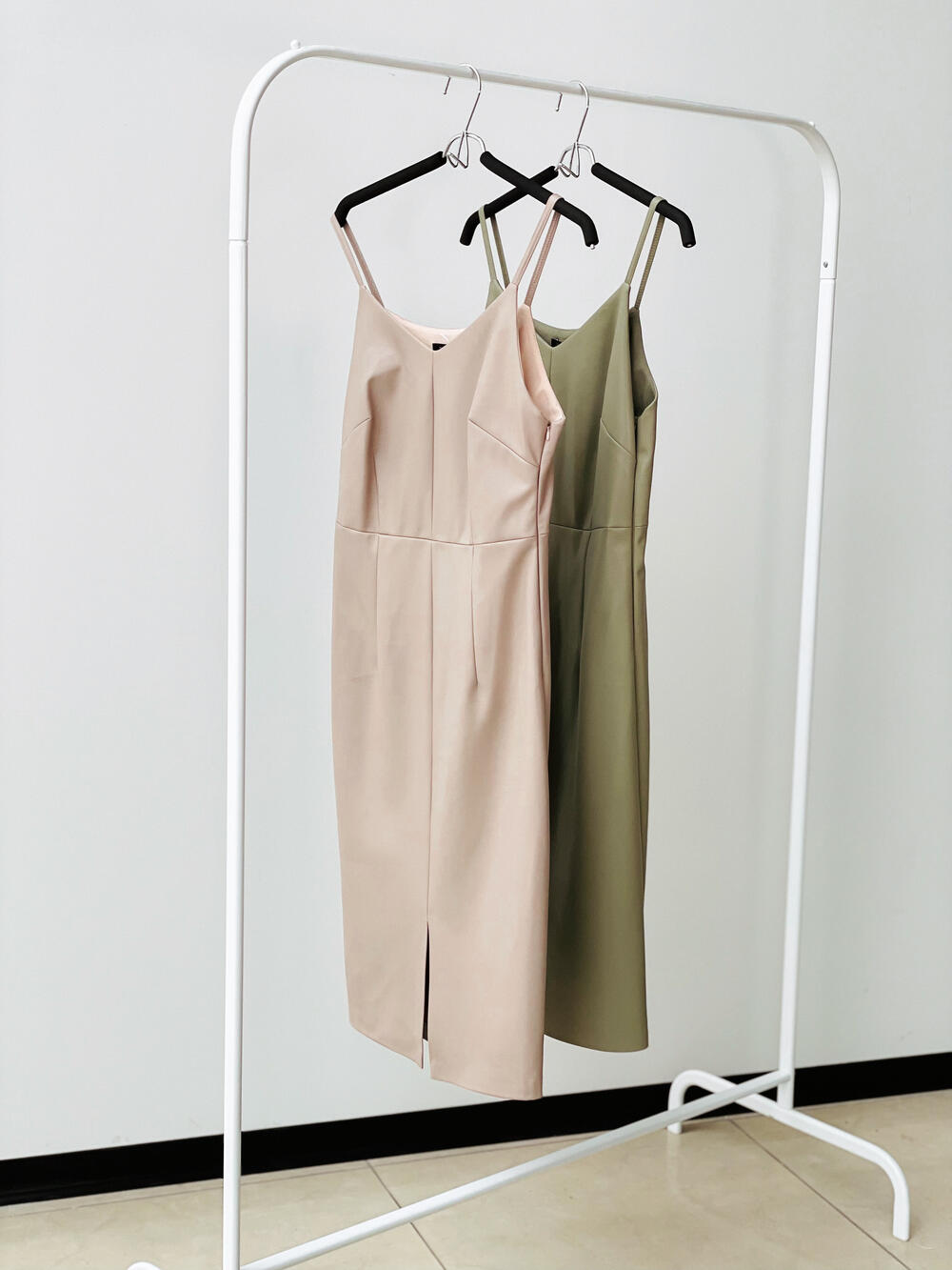 Сарафан напівприталеного силуету з екошкіри на замші, застібка на блискавку по лівому боку, відрізний по лінії талії, позаду маленька шліца.