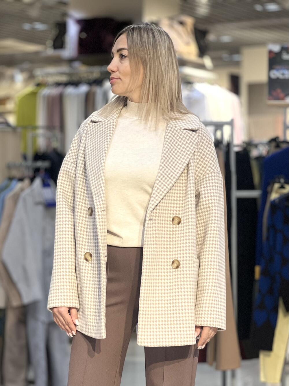 Пальто-піджак LK 768 укорочене двобортне гусяча лапка Vam бежево-молочний, 40-46