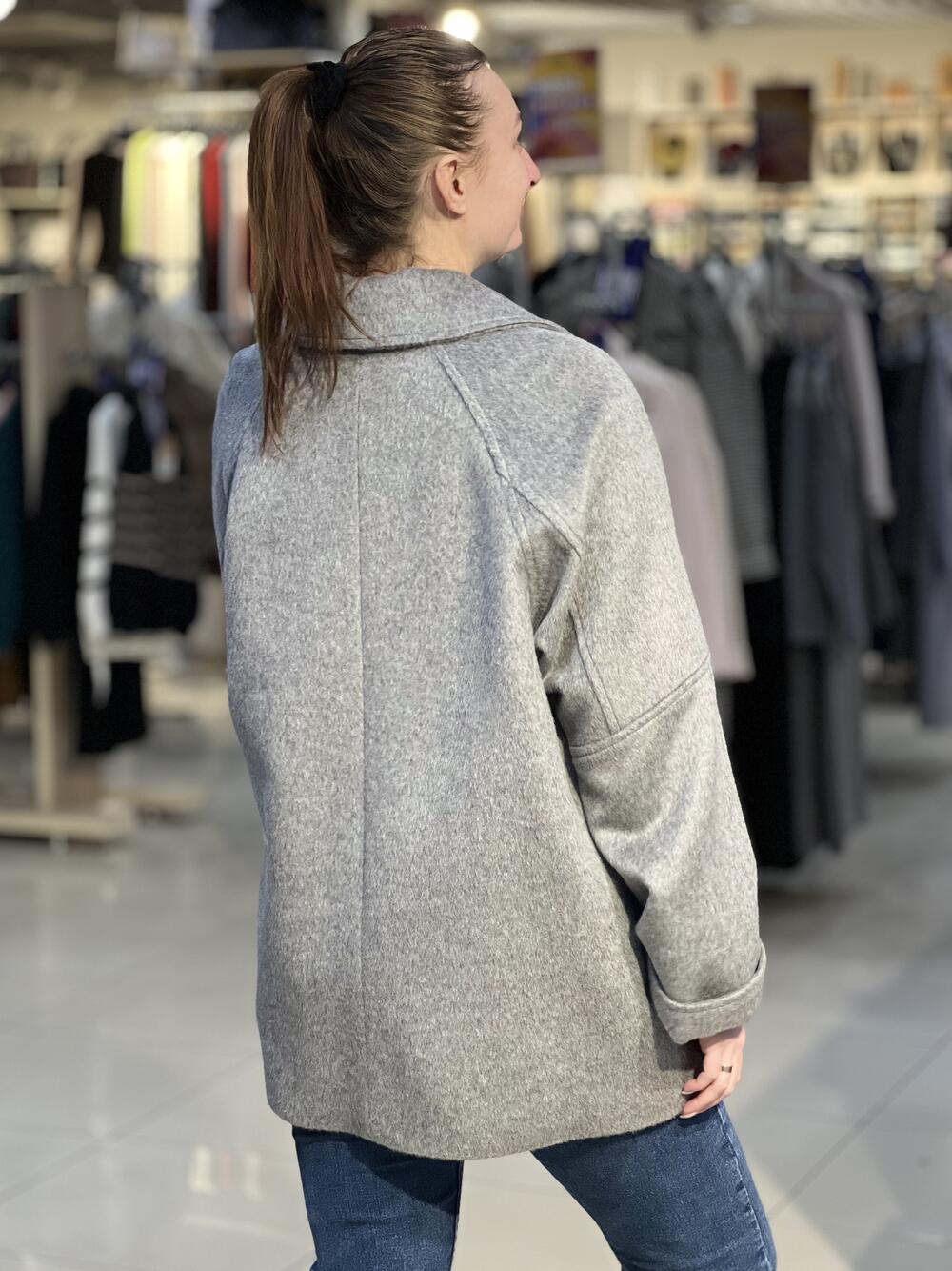 Пальто коротке вільного крою, рукав-реглан,застібка на ґудзики, накладні кишені, відкладний комір