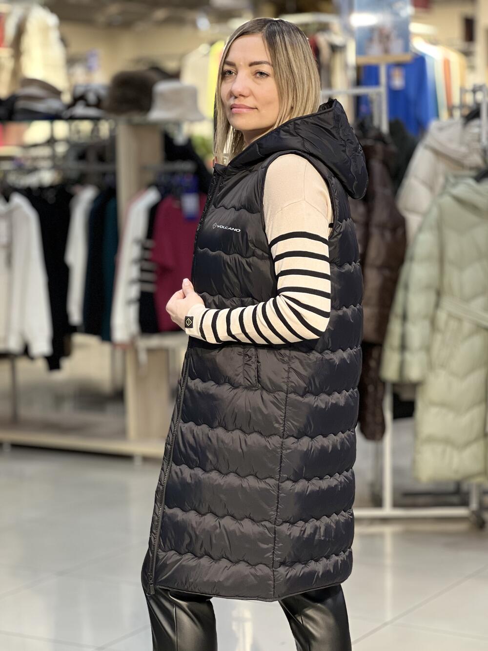 Жилет V-KESIA довгий стьобаний з капюшоном Volcano чорний, M