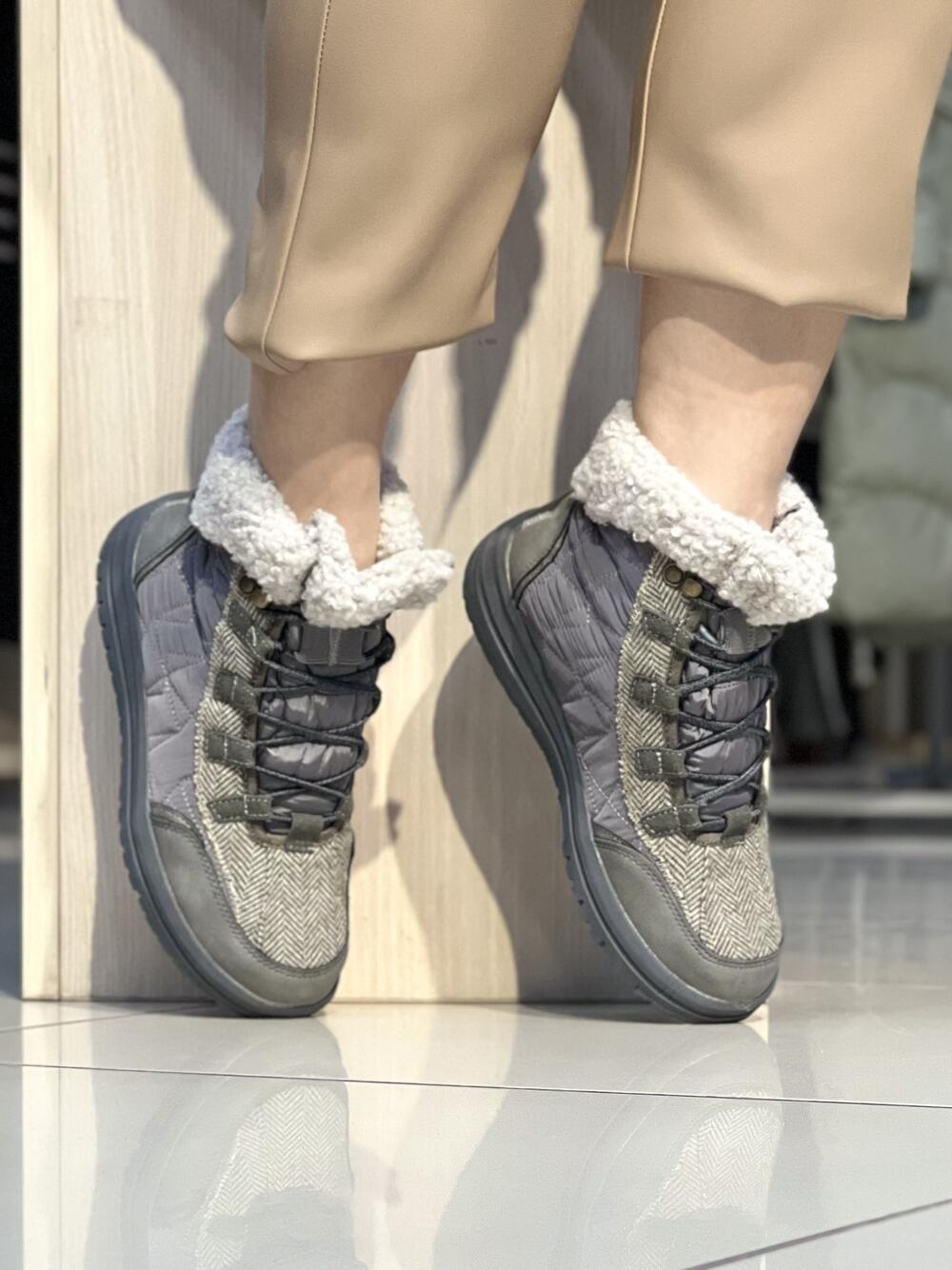 Черевики жіночі 20-169 SARMA DIANA комбіновані стьобані твід Hodaki сірий з бежевим, 39