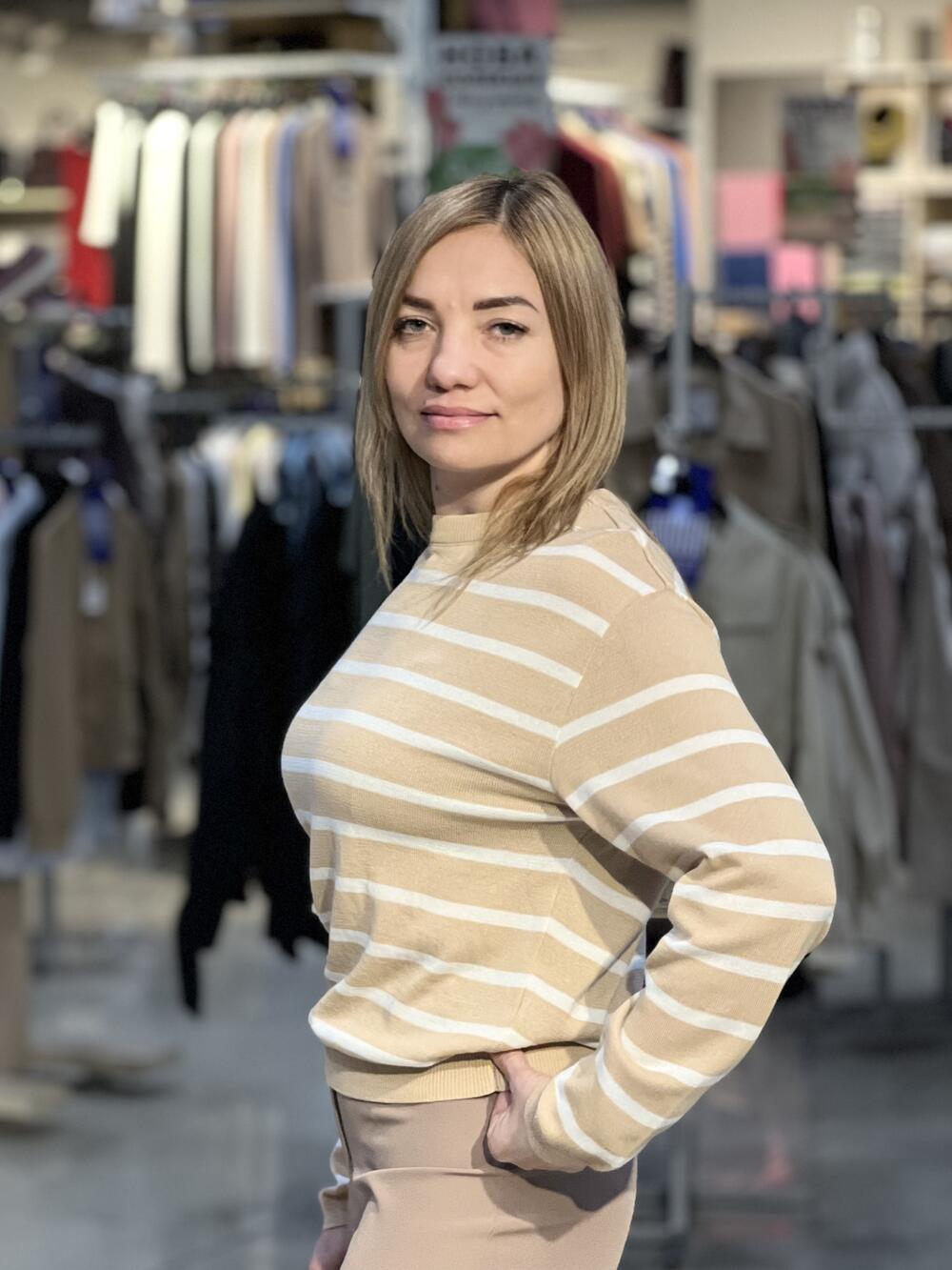 Джемпер LN 2800 д/р в смужку TrikoBakh мигдаль-айворі, 46-48