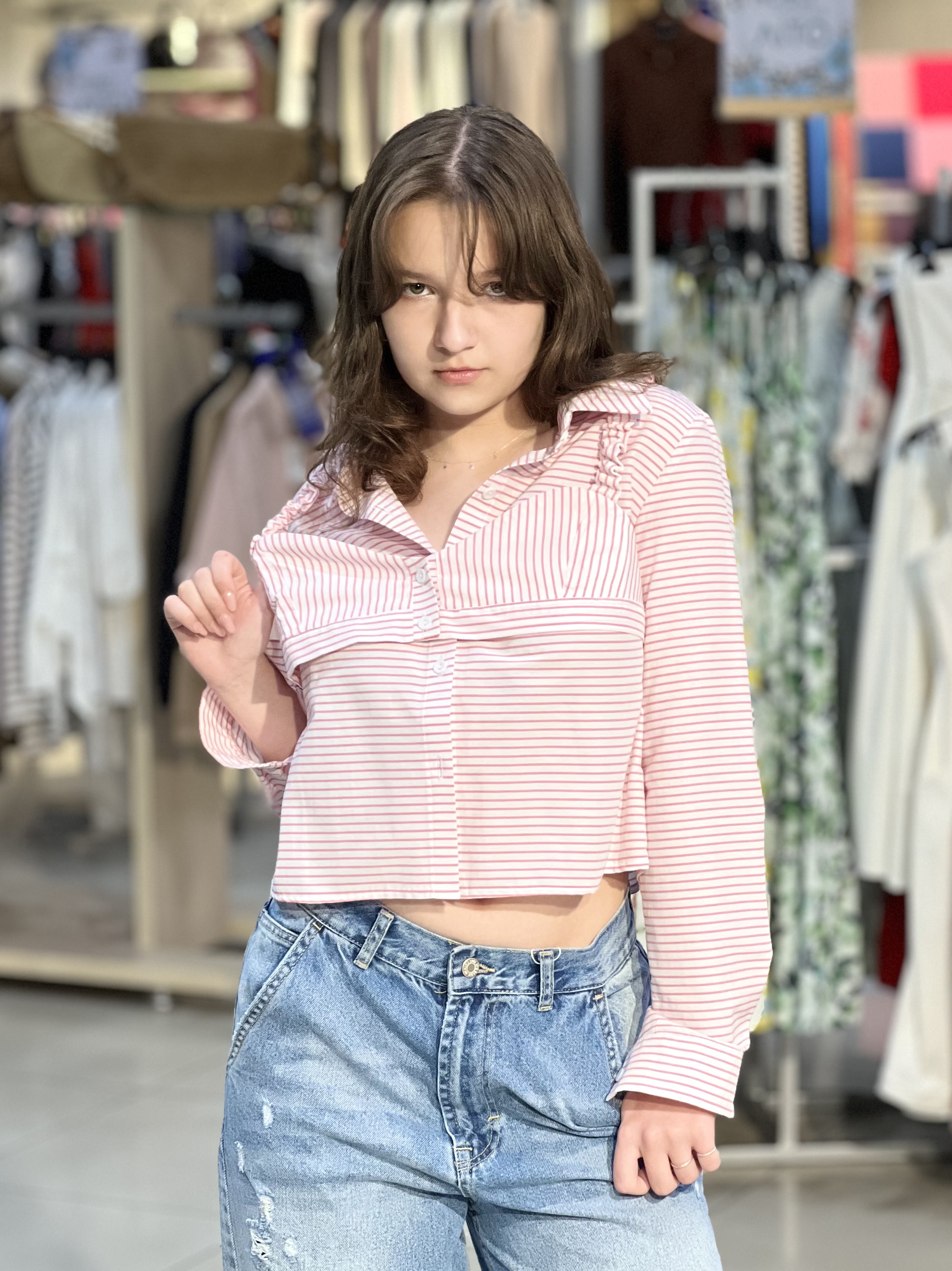 Сорочка в смужку д/р ,комір відкладний,застібка на ґудзики,рукав на манжеті
